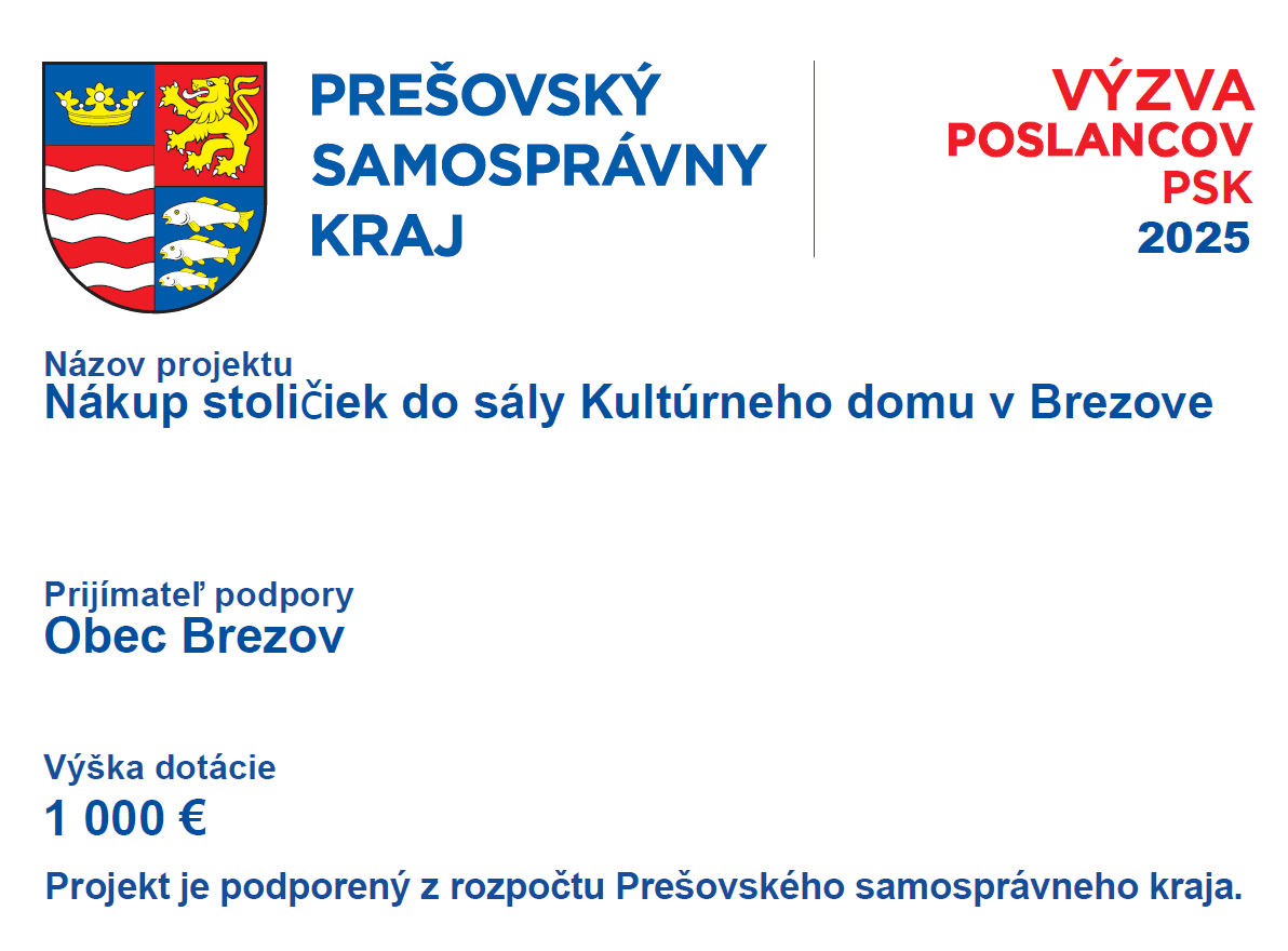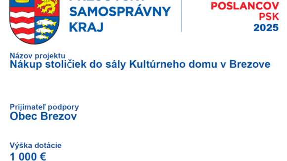 Nákup stoličiek do sály Kultúrneho domu v Brezove – Projekt je podporený z rozpočtu Prešovského samosprávneho kraja